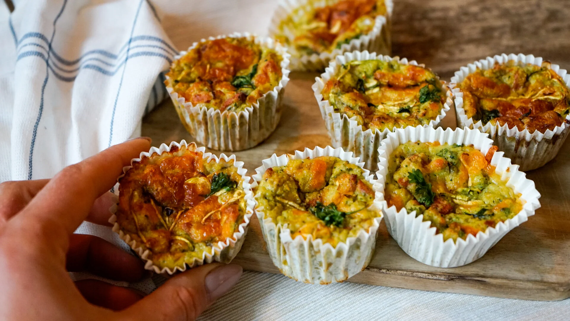 Rasp de courgette en laat deze goed uitlekken. Mix alle ingredienten met elkaar, behalve de geraspte cheddar. De cheddar schep je vervolgens met een lepel door het mengsel heen.